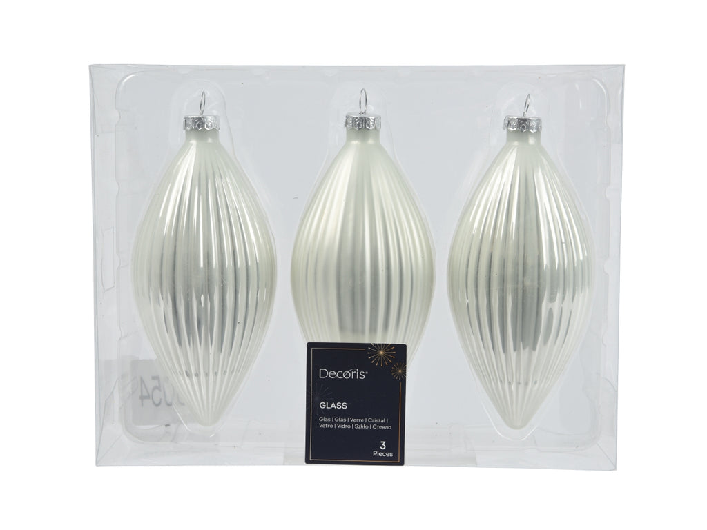 Palla oliva vetro 13cm in confezione da 3 pezzi bianco