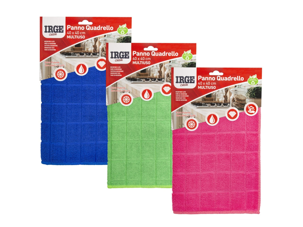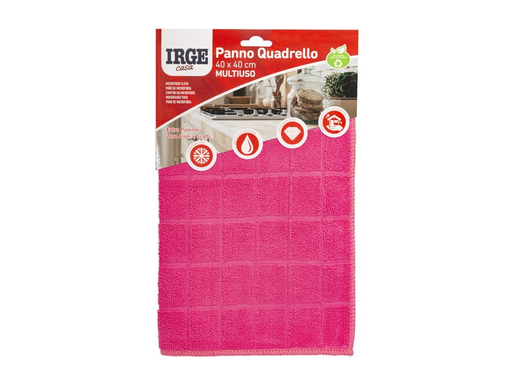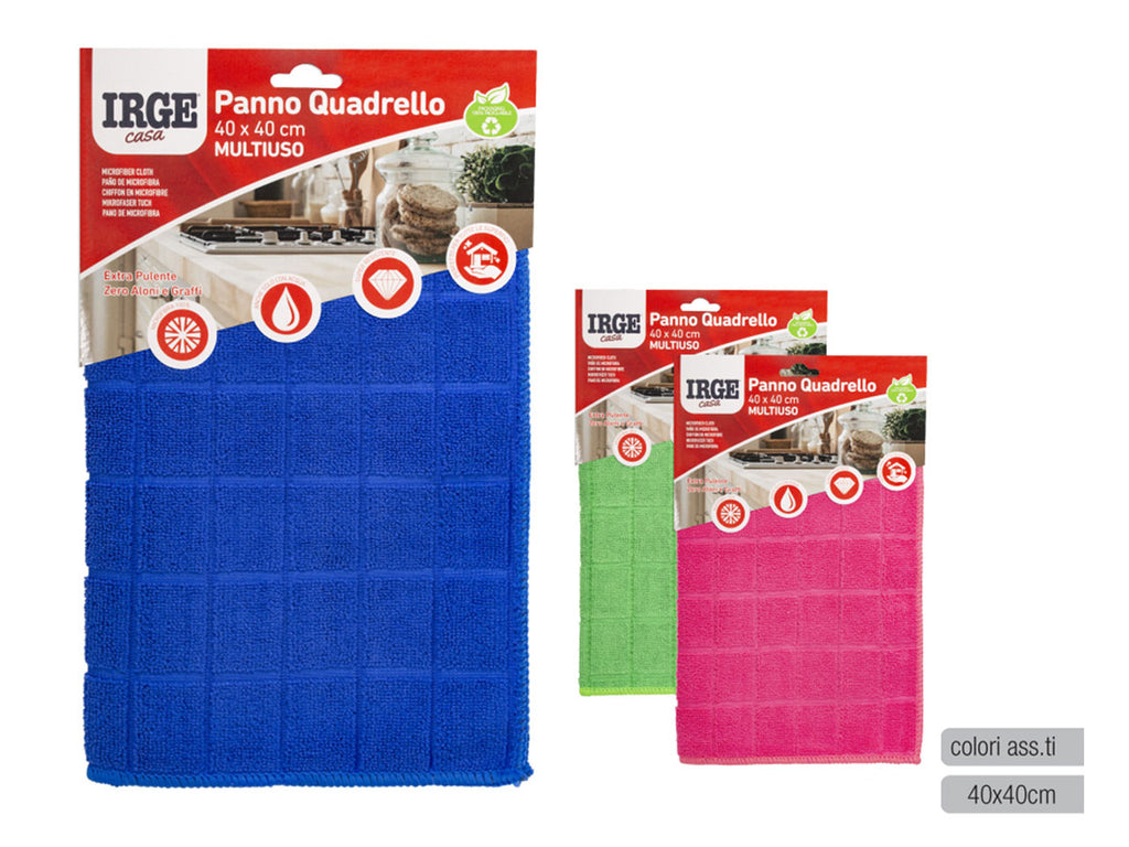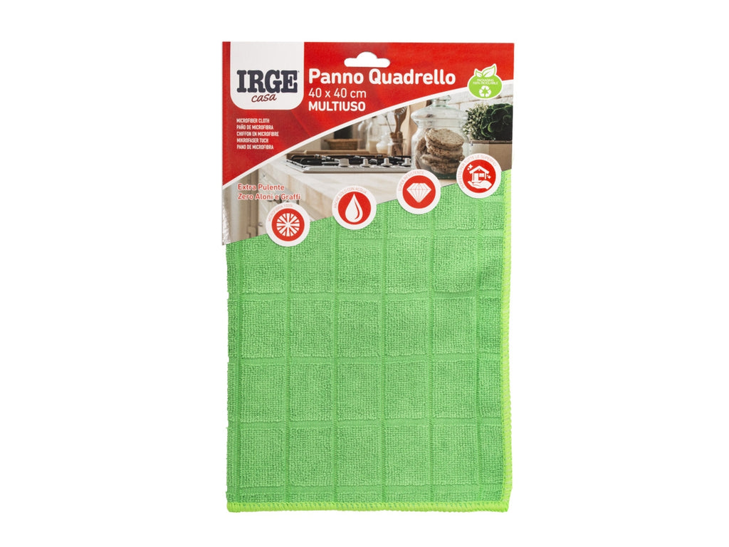 Panno irge quadrello microfibra 40x40cm, speciale texture per rimuovere lo sporco con più facilità . adatto a tutti i tipi di superficie. zero aloni e graffi. grazie al suo potere elettrostatico può essere utilizzato anche da asciutto per spolverare.