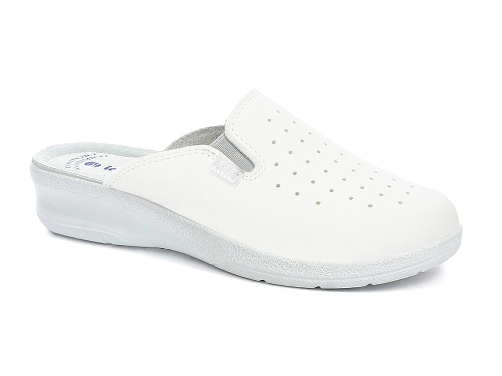 La pantofola da donna sanitaria, disponibile nelle taglie dal 35 al 41, è realizzata in colore bianco è progettata per garantire il massimo comfort durante l’uso quotidiano, ideale per ambienti professionali come ospedali, studi medici e laboratori. La tomaia in materiale resistente e facilmente lavabile assicura igiene e praticità, mentre la suola antiscivolo offre stabilità e sicurezza nei movimenti. La calzata comoda e il design leggero permettono di indossarla per molte ore senza affaticare il piede, rendendola una scelta funzionale e confortevole per chi necessita di una calzatura sanitaria affidabile.