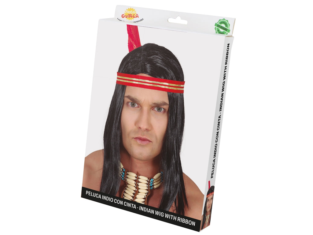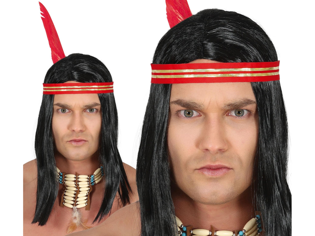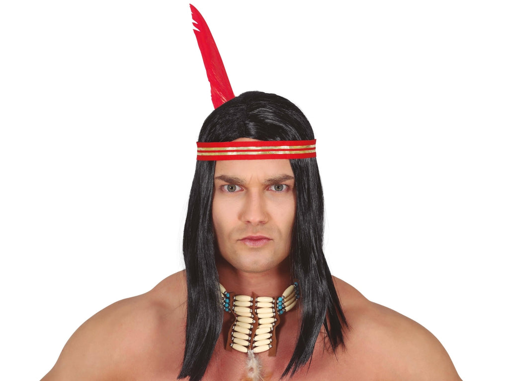 Parrucca da indiano con nastro e piuma