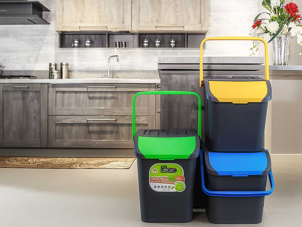Pattumiera per differenziata ecologic 28 ltpattumiera per differenziata certificata plastica seconda vita e realizzata con almeno il 70% di plastica riciclata. dotata di doppia apertura per facilitare il conferimento dei rifiuti. resiste agli urti e alle movimentazioni frequenti e alle alte e basse temperature, è flessibile e indeformabile, ideale per ambienti interni ed esterni, grazie anche al manico anti-randagismo.