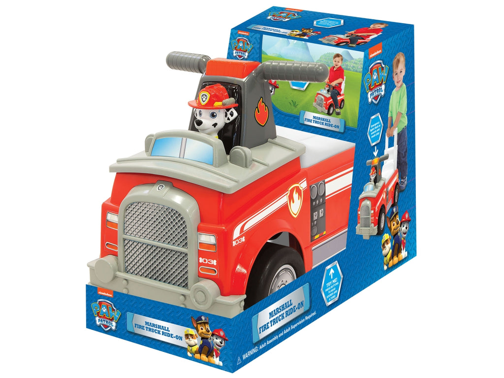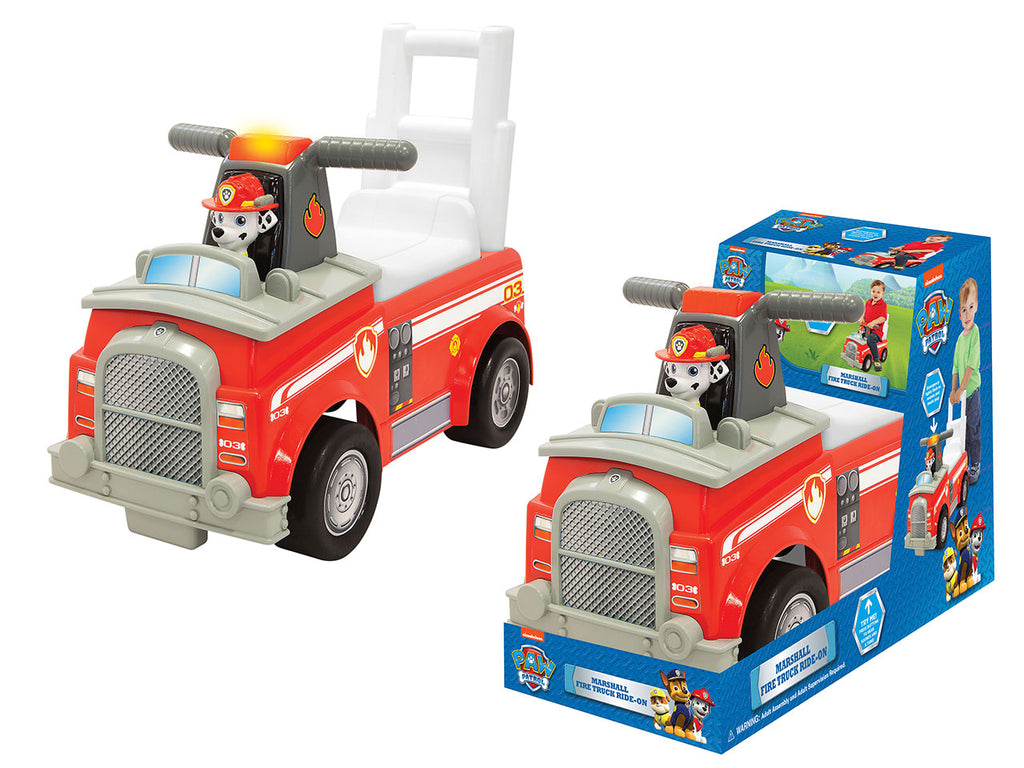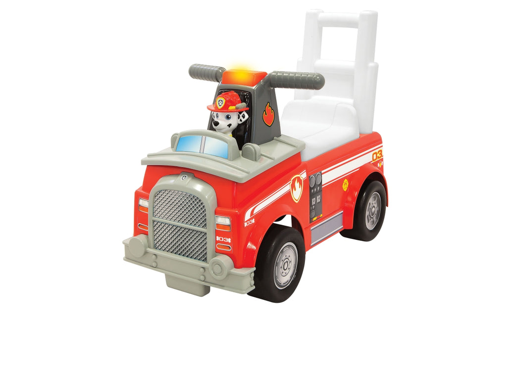 Ecco i Paw Patrol, il gruppo di cani da salvataggio che vive sempre avventure fantastiche. Gli eroici cuccioli, che credono che "nessun incarico è troppo grande, nessun cucciolo è troppo piccolo", sono Marshall il pompiere, Chase il poliziotto e l'impavida pilota Skye. La Paw Patrol è sempre pronta per la sfida! Ecco il camion dei pompieri di Marshall di Paw Patrol, per sfrecciare con la musica! Questo cavalcabile è altamente dettagliato e riproduce fedelmente le caratteristiche del personaggio. Premendo i pulsanti sul manubrio si possono ascoltare suoni e musica che renderanno il tempo di gioco ancora più divertente.