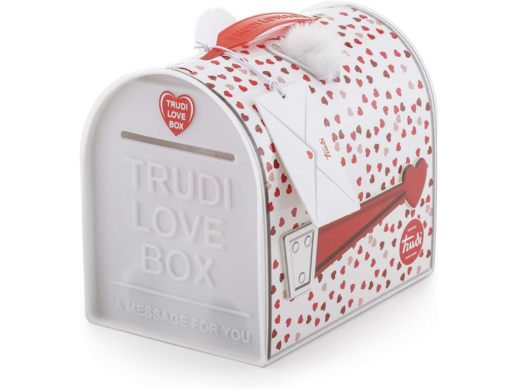 Un dolcissimo messaggio d'amore in una confezione unica e speciale che riprende la tipica cassetta delle lettere americana. Completa di biglietto per scrivere il messaggio e fessura per l'inserimento. Contiene scatolina scrigno interna per nascondere un altro regalo, con dettaglio peluche visibile per stuzzicare l'immaginazione.