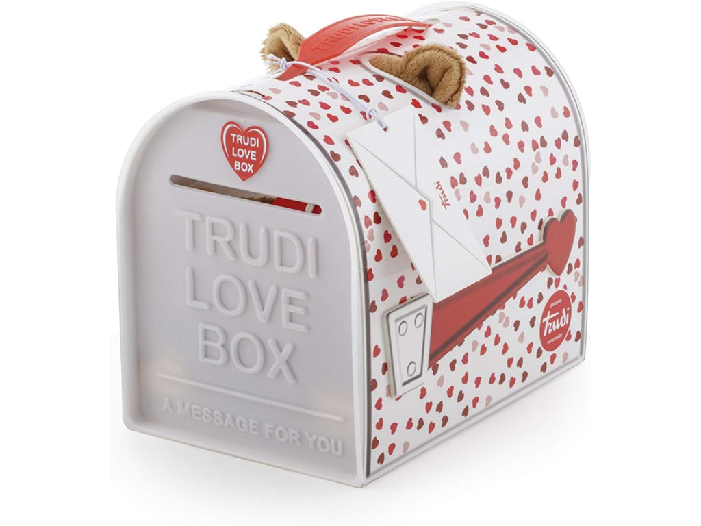 Un dolcissimo messaggio d'amore in una confezione unica e speciale che riprende la tipica cassetta delle lettere americana. Completa di biglietto per scrivere il messaggio e fessura per l'inserimento. Contiene scatolina scrigno interna per nascondere un altro regalo, con dettaglio peluche visibile per stuzzicare l'immaginazione.