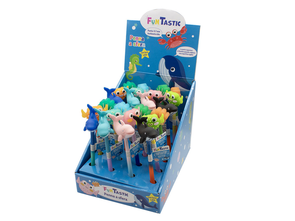 La Penna a sfera "Animali del mare" con luce a LED è un accessorio divertente e pratico, perfetto per aggiungere un tocco di fantasia alle tue scritture. Realizzata in materiali di alta qualità come PVC, PE e PS, questa penna garantisce durabilità e una piacevole esperienza di scrittura. L'inchiostro è di colore blu con un tratto di 0,7 mm, offrendo una scrittura fluida e precisa. La penna è dotata di una luce LED, che la rende non solo funzionale, ma anche ideale per l'uso in condizioni di scarsa illuminazione. Disponibile in tre fantasie diverse (conchiglia, pesce e balena), ciascuna in quattro colori assortiti.