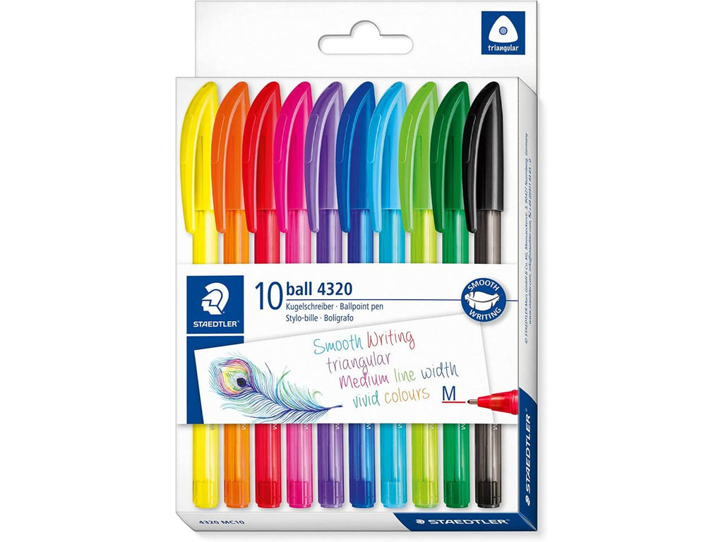 Penna a sfera stick arcobaleno, 10 pezzi, colori assortiti. penna a sfera arcobaleno con canna triangolare per una scrittura rilassata e facile. prestazioni di scrittura particolarmente fluide. perfetto per scrivere appunti sia in ufficio che a scuola. diametro della sfera di 1,0 mm per una larghezza di linea media. confezione da 10 penne a sfera in colori arcobaleno assortiti
