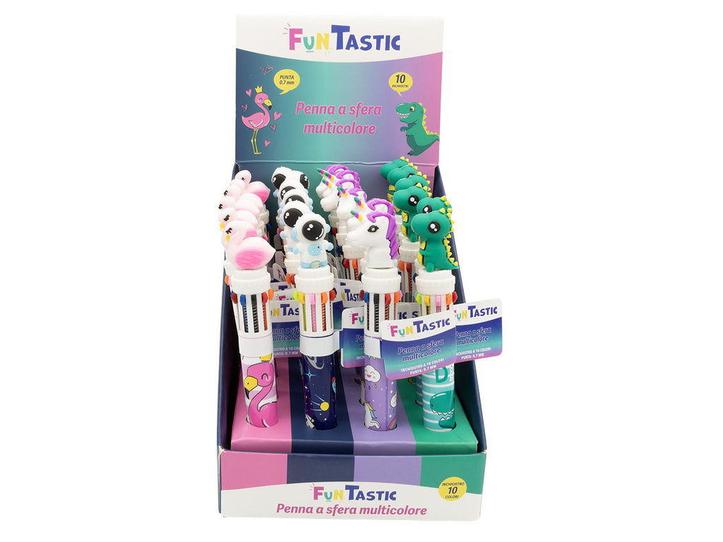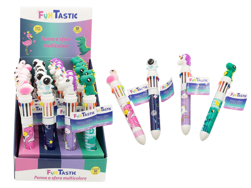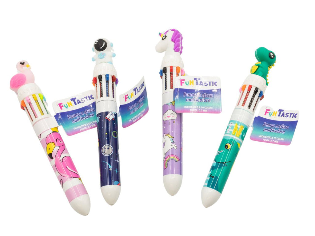 La Penna a sfera multicolore 10 colori è un accessorio versatile e divertente, perfetto per chi ama aggiungere colore alle proprie scritture e disegni. Con una dimensione di 17,7 cm, questa penna è realizzata in materiale AS di alta qualità , garantendo durabilità e un design accattivante. La penna offre inchiostro in 10 colori diversi, tutti con un tratto di 0,7 mm, permettendo di alternare facilmente tra colori per una scrittura vivace e creativa. Disponibile in quattro fantasie assortite: unicorno, fenicottero, astronauta e dinosauro.