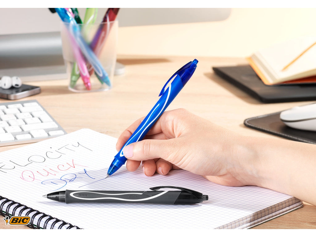 Penna Bic gel-ocity Quick Dry, punta media, inchiostro ad asciugatura ultra rapida, gel liquido scorrevolissimo, impugnatura ergonomica per offrire il massimo comfort nella scrittura, con meccanismo retrattile