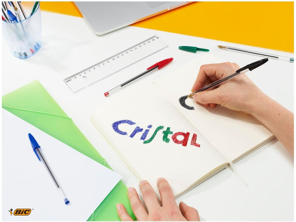 Un set di 10 penne blu BIC Cristal Original, la penna a sfera più venduta al mondo. La punta media da 1,0 mm scivola facilmente sulla carta per un comfort senza pari e una scrittura morbida senza sbavature. Design efficiente, semplice e affidabile: ha un corpo trasparente per controllare il livello di inchiostro. Ultra-resistente, la penna BIC contiene abbastanza inchiostro blu per scrivere fino a 3 km. Le penne BIC Cristal a punta media sono dotate di eco-colabel NF Environnement e di una confezione progettata in cartone 100% rigenerabile.
