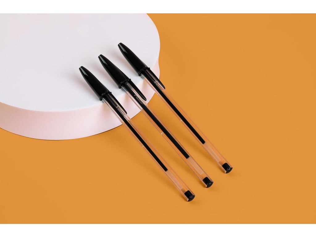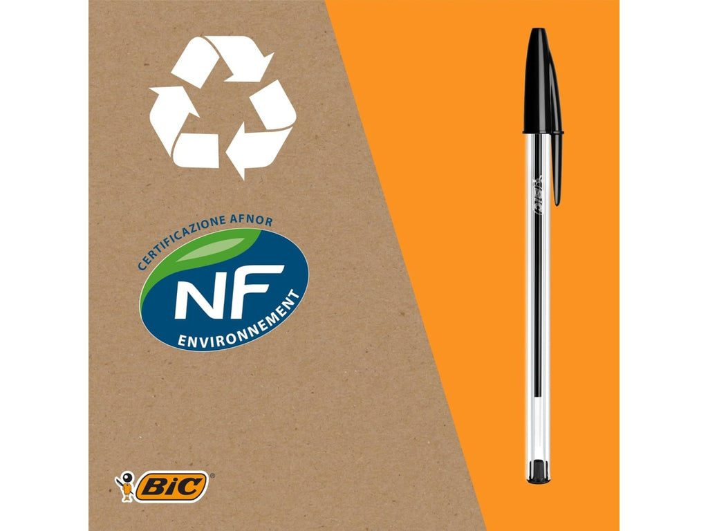 La confezione da 10 penne nere BIC Cristal Original offre la versione più iconica e venduta al mondo delle penne a sfera, qui proposta con tappo e terminale abbinati al colore dell’inchiostro. La punta media da 1,0 mm assicura una scrittura fluida, scorrevole e precisa, senza sbavature, mentre il design essenziale e affidabile si distingue per il fusto trasparente che permette di controllare in ogni momento il livello d’inchiostro. Estremamente durature, queste penne possono raggiungere fino a 3 km di scrittura con un’unica ricarica di inchiostro nero. Le BIC Cristal sono inoltre certificate dal marchio di qualità ecologica NF e confezionate in cartone riciclabile al 100%, combinando prestazioni elevate e attenzione all’ambiente.