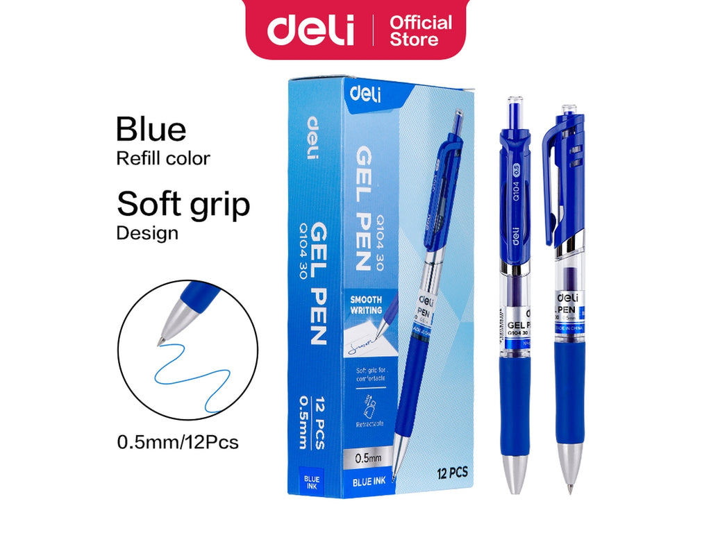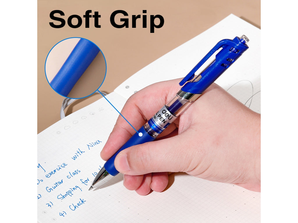 Penna gel blu con clips, scatola da 12 pezzi, peso 12 g punta da 0,5 mm