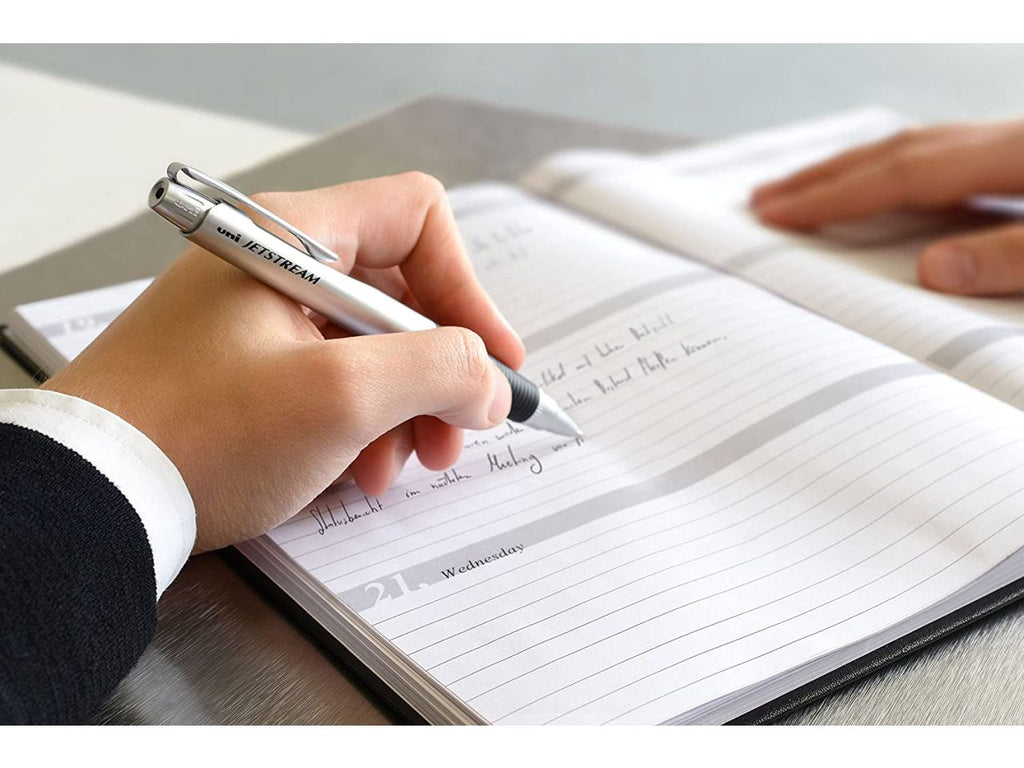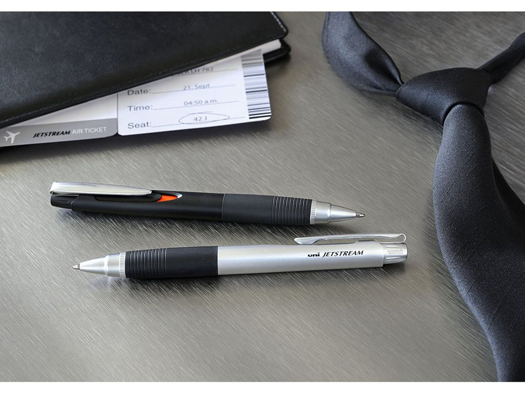 Uni jetstream premier penna scatto fusto argento. roller a inchiostro pigmentato, resistente all'acqua e alla luce. massima affidabilità  grazie al meccanismo a doppia sfera che garantisce un flusso di inchiostro continuo e costante ed un tratto preciso senza sbavature. eccezionale scorrevolezza che rende straordinarie le performances di scrittura. asciugatura immediata, ideale per mancini. morbido meccanismo a scatto a sospensione d'aria. fusto con clip di design e grip in morbida gomma sagomata. ricaricabile. punta in acciaio inossidabile e sfera in carburo di tungsteno 1 mm. fusto color argento. tubo in plastica e confezione inclusi. inchiostro nero.