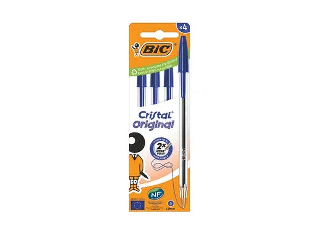 Queste penne a sfera Bic Cristal sono dotate di un resistente meccanismo a sfera in carburo di tungsteno e di inchiostro liscio ad asciugatura istantanea per un uso quotidiano affidabile. La punta media da 1,0 mm produce una linea sottile da 0,32 mm. Il fusto esagonale include un cappuccio blu e un tappo terminale che corrisponde al colore dell'inchiostro per una facile identificazione. Questa confezione contiene 4 penne blu in una scatola di cartone riciclabile.