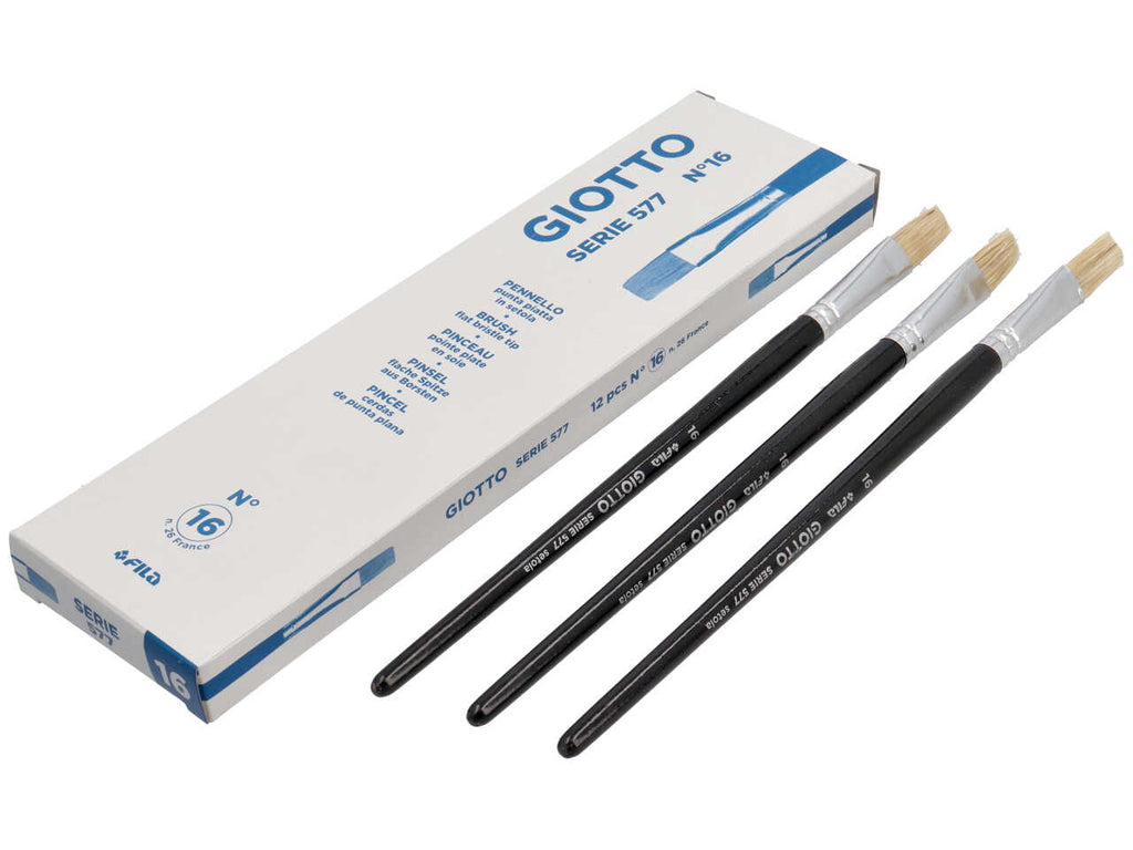 Pennelli punta piatta in setola n°16 12 pezzi colore manico nero brand giotto.
