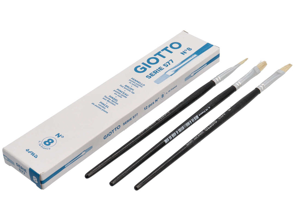 Pennelli punta piatta in setola n°8 12 pezzi colore manico nero brand giotto.
