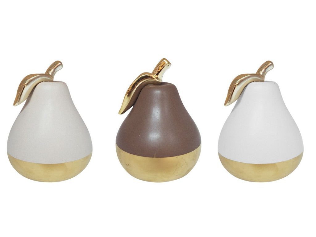 Pera decorativa in ceramica 11x8x8cm tortora/oro e marrone/oro