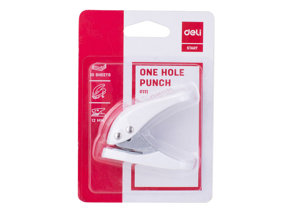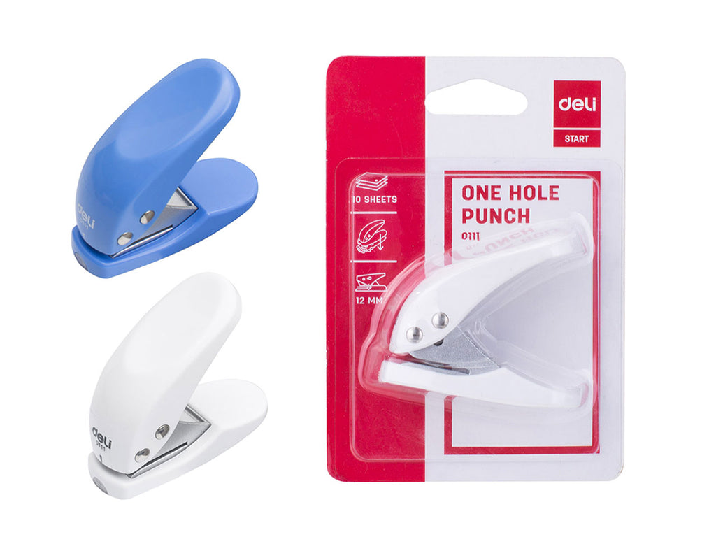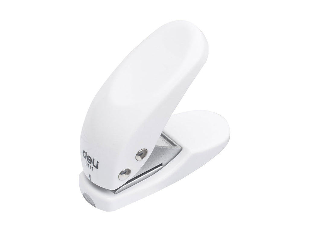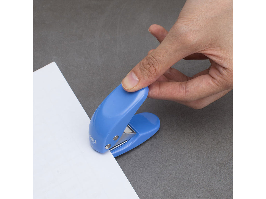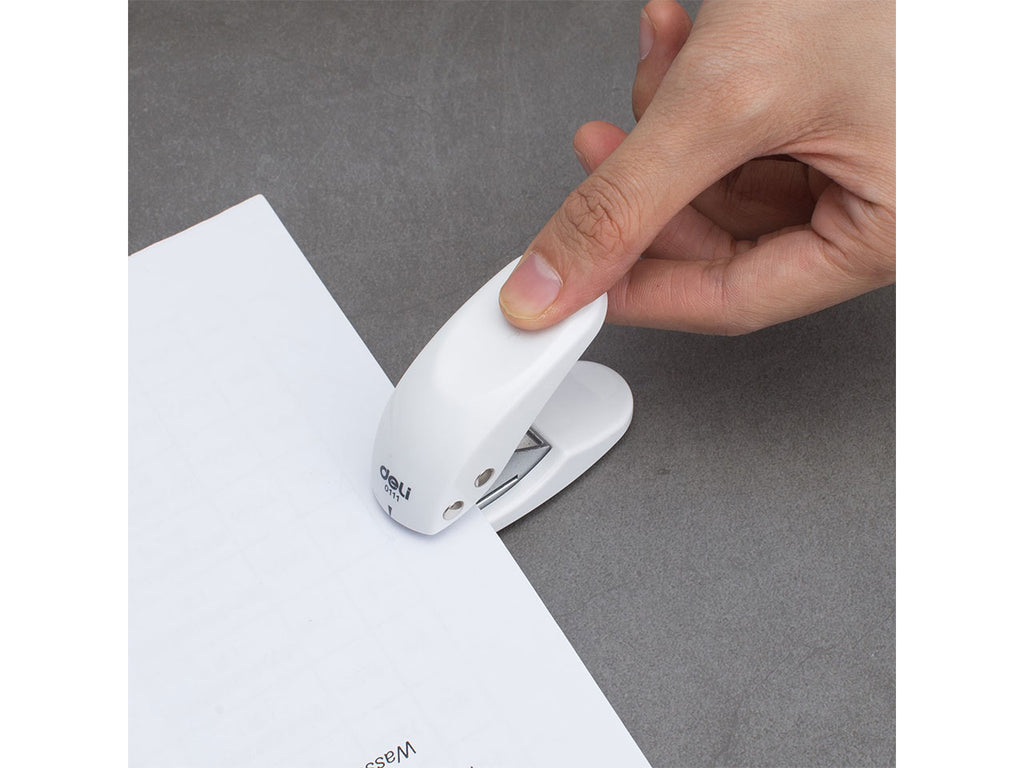 Perforatore dal design compatto, 1 forto diam. 6mm. perfora fino a 10fogli 70gr. gola 12mm e vano raccogli coriandoli