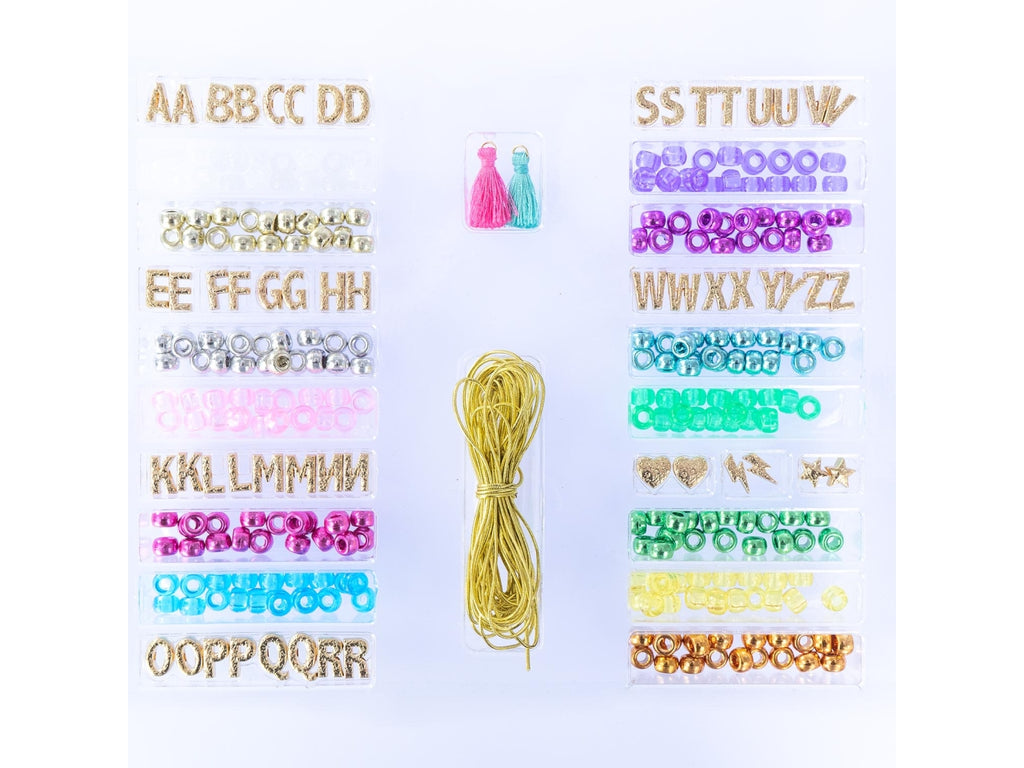 Grande set per chi ama creare i propri accessori. Ottima idea per per passare il tempo creando collane e bracciali personalizzati con i colori e le forme che ami di più, con il tuo motto o il tuo nickname preferito e la possibilità di utilizzare lettere in vero metallo dorato. USO: taglia la matassina alla giusta lunghezza per la creazione che intendi fare, infila le perline nellâordine che ti piace, chiudi e indossa.