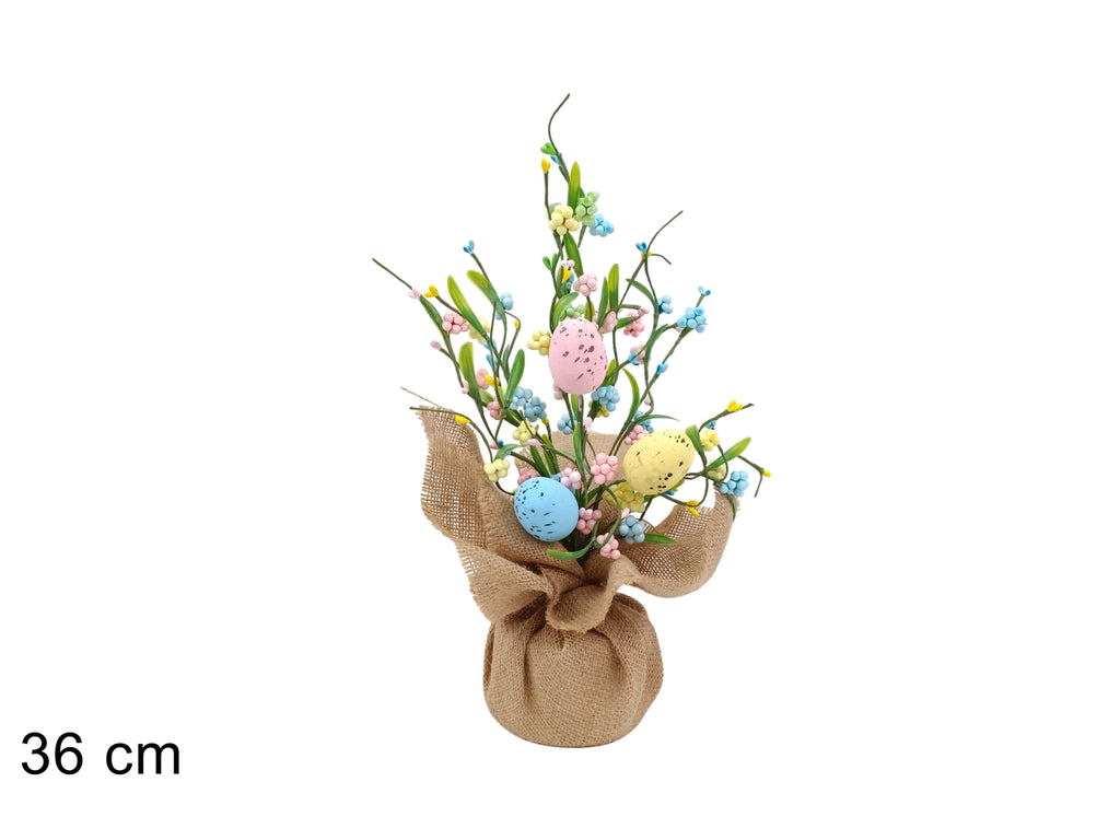 Pianta 36cm con uova e bacche colorate
