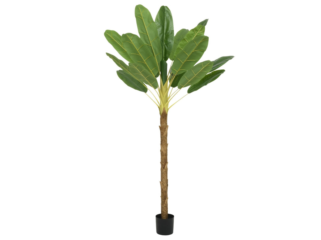 Questa elegante pianta artificiale Everlands conferisce immediatamente un'atmosfera tropicale a qualsiasi spazio. Si tratta di una pianta di banano (Musa basjoo) alta 180 cm, larga 100 cm e profonda 120 cm. Realizzata in resistente PE, questa pianta artificiale verde ha un aspetto particolarmente naturale grazie alle sue foglie dettagliate e al fusto realistico. Le sue dimensioni generose e la sua bassa manutenzione la rendono un elemento perfetto per interni sia moderni che rustici. Combinabile con altre piante artificiali Everlands per un'oasi verde che non richiede manutenzione.