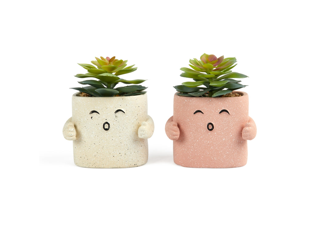 Piantina in vasetto hug in plastica e cemento 12,5x8,5xh.14,5 cm design assortiti