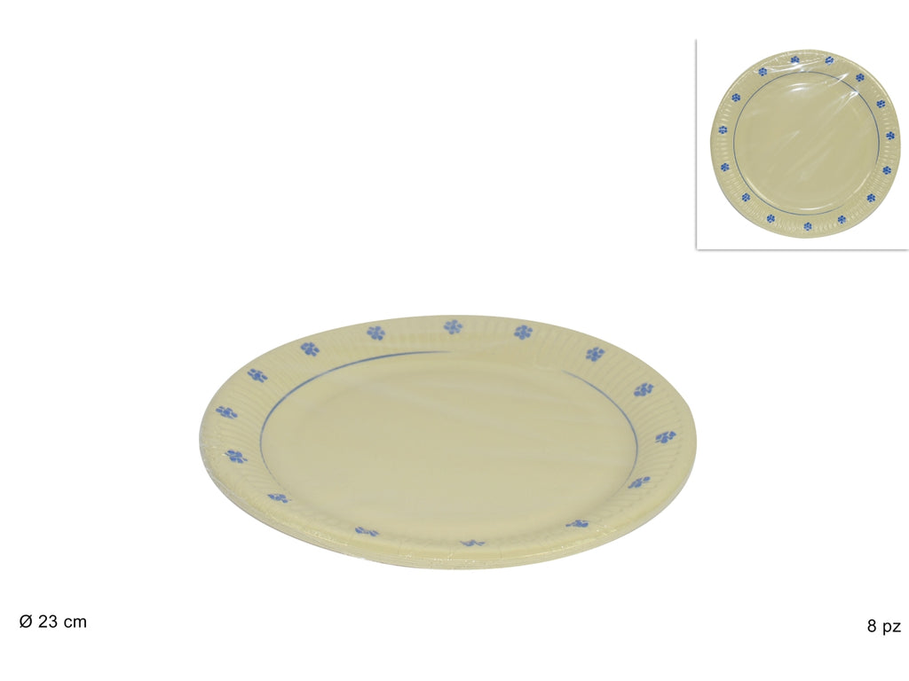 Piatti di carta 23cm blu flower confezione da 8 piatti