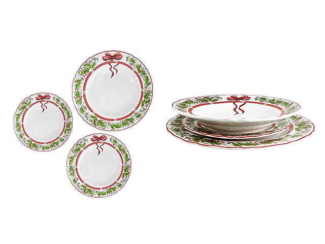 Piatti natalizi ribbon in porcellana - la confezione comprende 18 piatti