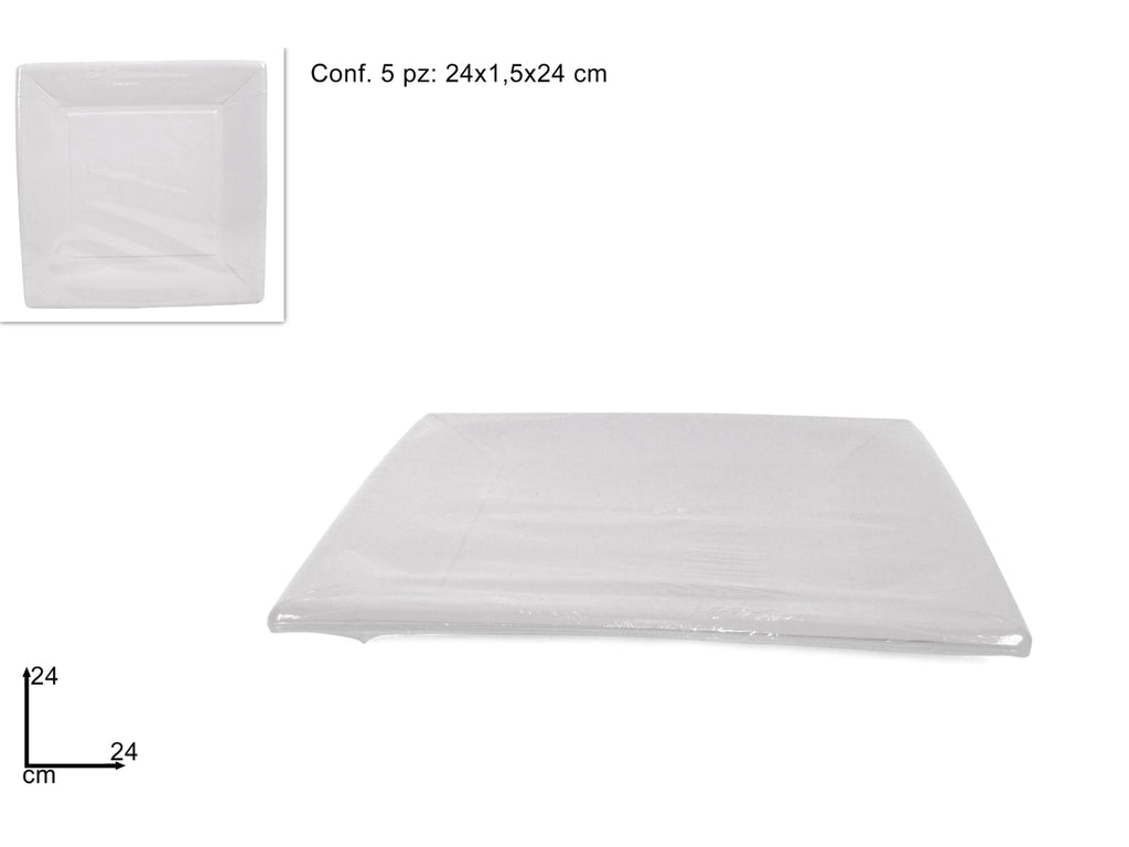 Piatti quadrati cartoncino 24cm set da 5 piatti bianchi