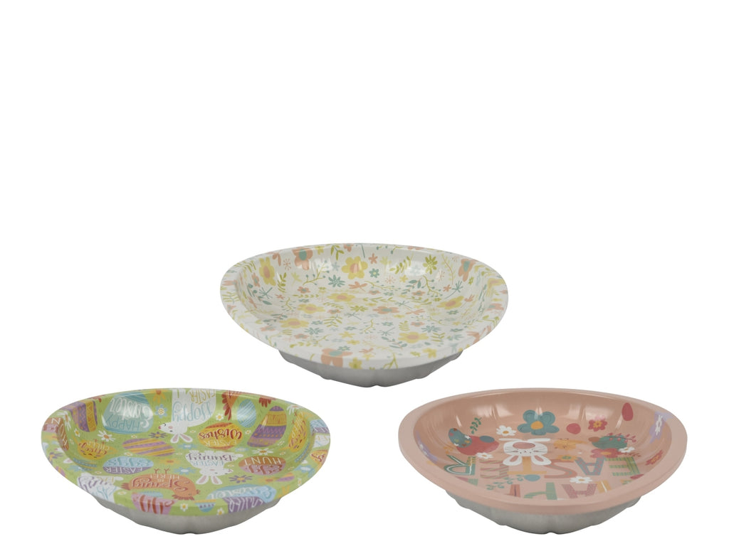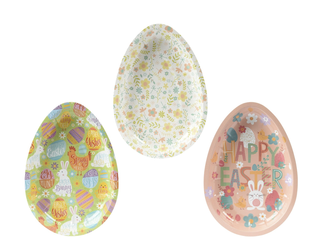Aggiungi un tocco allegro e giocoso ai tuoi interni con questo set di piatti decorativi Decoris. Questi piatti da portata a forma di uovo sono realizzati in robusta latta e presentano una stampa a quattro colori con diversi motivi vivaci. Grazie ai colori vivaci e all'esclusivo design a forma di uovo, creerai un'atmosfera suggestiva e festosa sulla tavola o in una credenza. Il set si adatta perfettamente a un arredamento contemporaneo o vintage.
