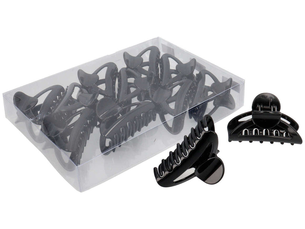 Pinza grande in acetato di color nero basico con molla e perno.