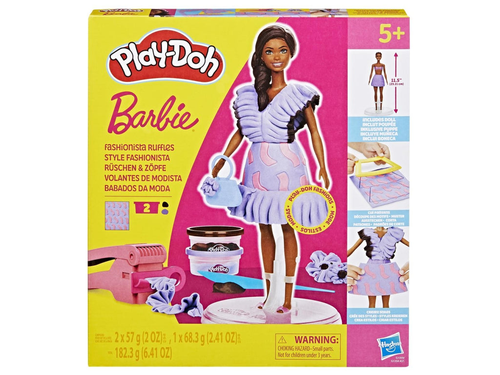 Questo set è un regalo perfetto per le bambine che amano i playset Barbie e i giocattoli Play-Doh, offrendo infinite opportunità di gioco creativo. Il kit include una bambola Barbie, un supporto, uno stampo per capelli, un timbro, un paio di scarpe, un coltello, un rullo, un foglio con il modello Play-Doh e 3 barattoli di pasta modellabile Play-Doh, per un totale di 185 g.