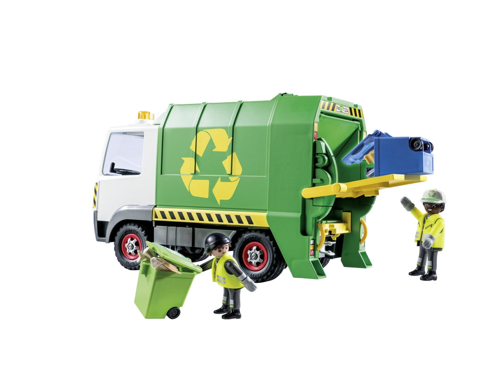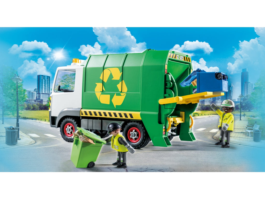 Tenere la città pulita è divertente con playset PLAYMOBIL . I bambini possono sollevare la lattina e svuotare il suo contenuto sul retro del camion. La sezione passeggeri del tetto è removibile per una migliore giocabilità . Il set include due personaggi, bidoni della spazzatura, estintore e altri accessori.