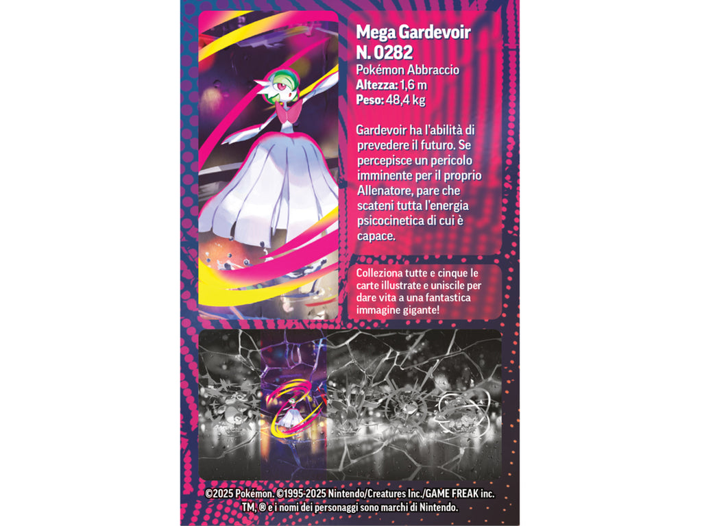 Una carta con l'illustrazione Pokémon esclusiva della miniscatola: puoi collezionarle tutte e cinque per completare l'immagine!