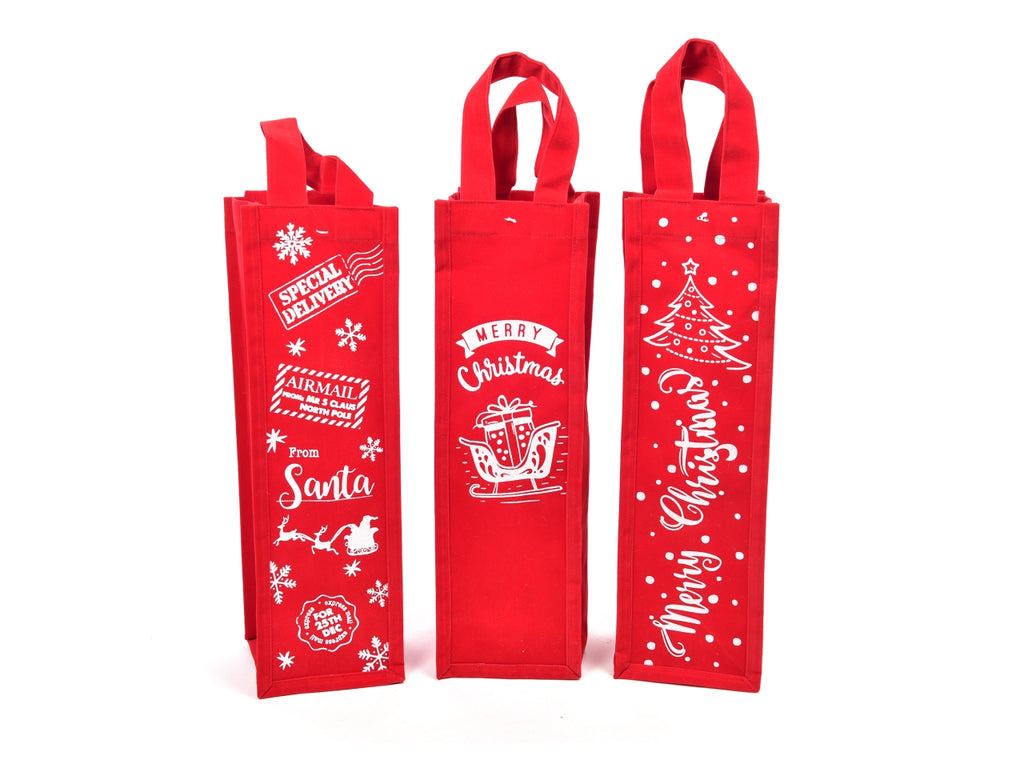 Portabottiglia natalizio in velluto 11x11x37cm assortito