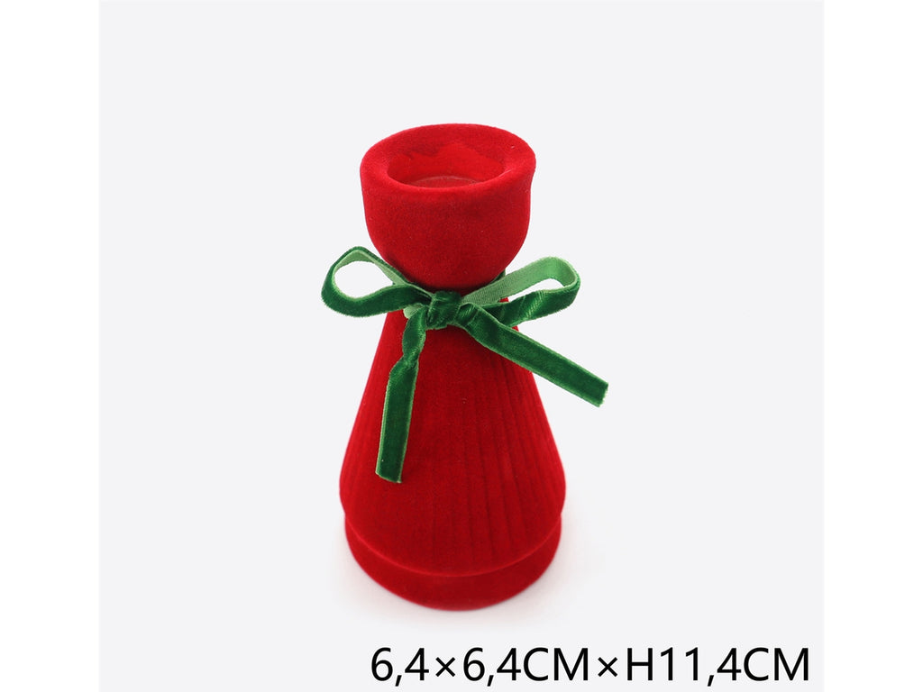 Portacandela 11,4cm rosso con fiocchetto verde