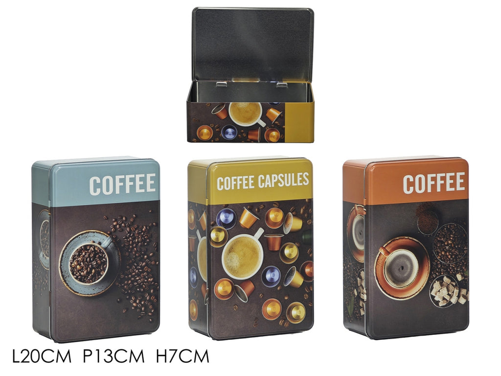 Portacapsule in latta rettangolare decorato 20x13xh.7cm in 3 fantasie assortite