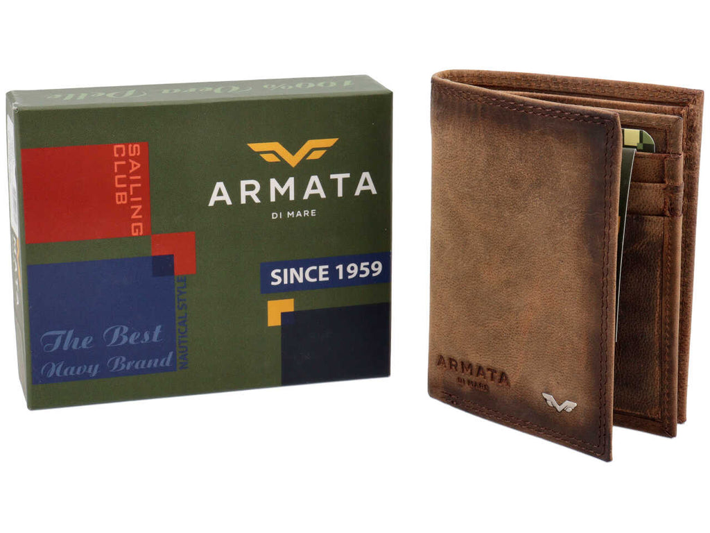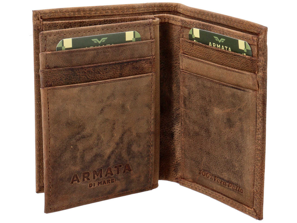 Portafoglio Armata di Mare uomo in vera pelle marrone invecchiata 10,5x7,5x2 cm