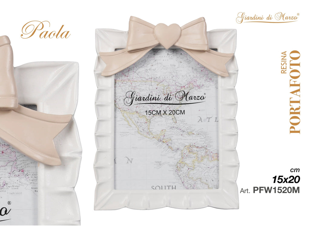 Portafoto bianco fiocco tortora 15x20cm mod.m