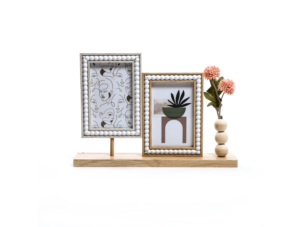 Portafoto multi 2 foto 10x15cm con piantina in mdf 34x7xh.23,5cm