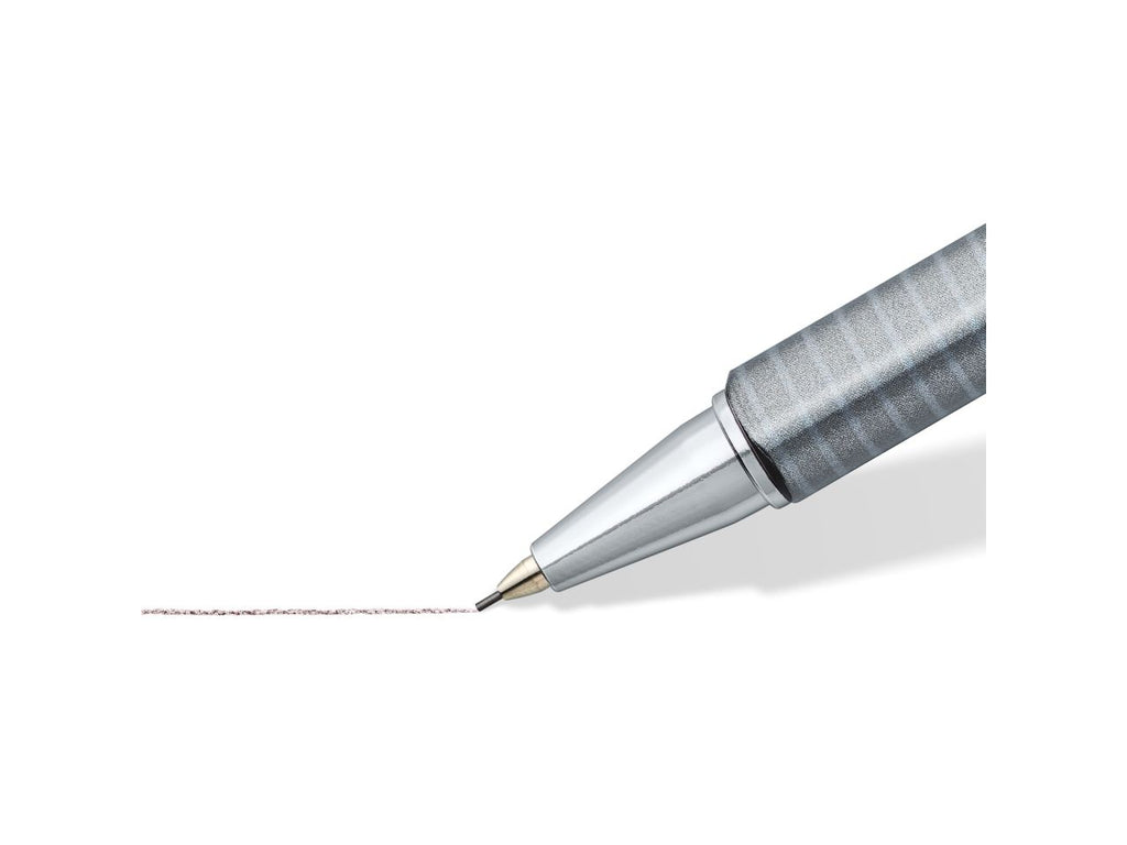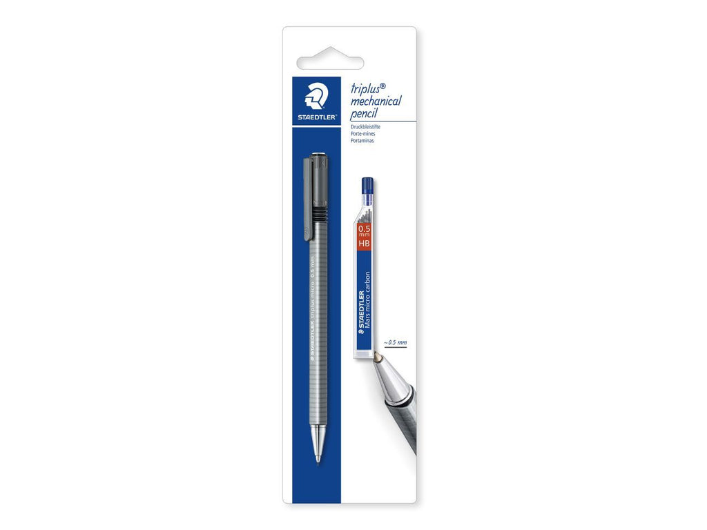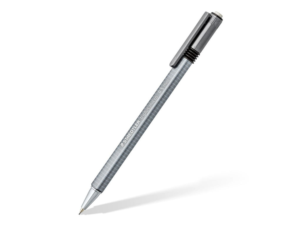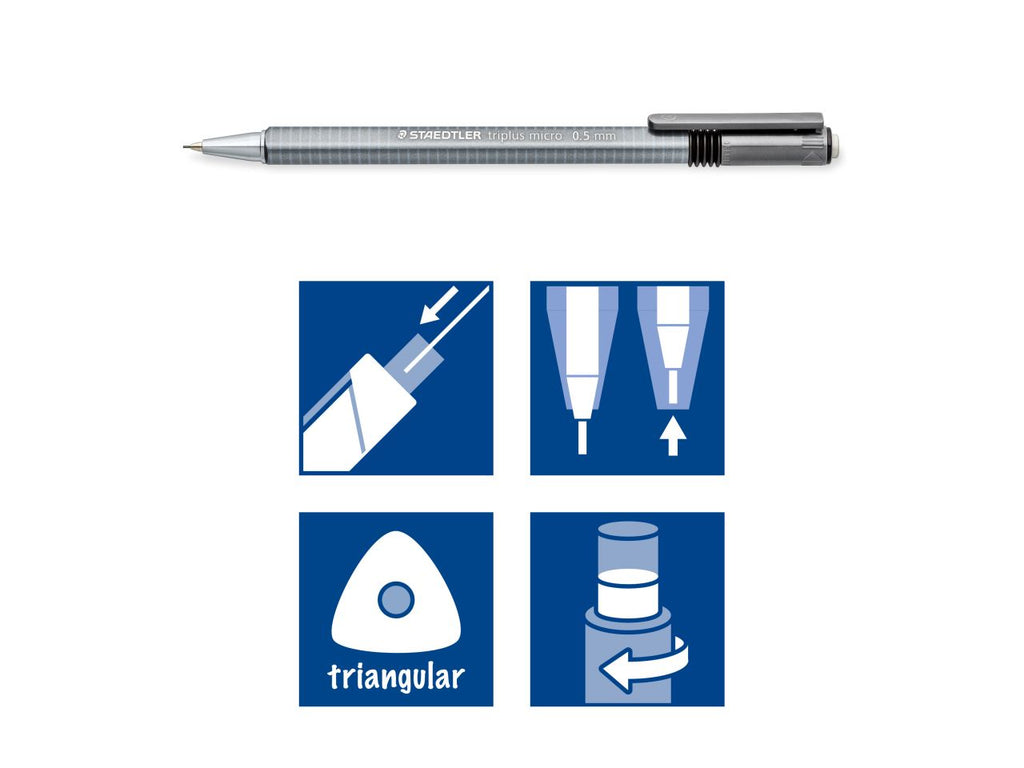 Portamine per l ascrittura fusto ergonomico triangolare punta in metallo cromato,tubetto mina rientra durante la scrittura,gommino extralungo estraibile ruotandoil cappuccio..caricato con mine 0,5 +tubetto 12 mine hb
