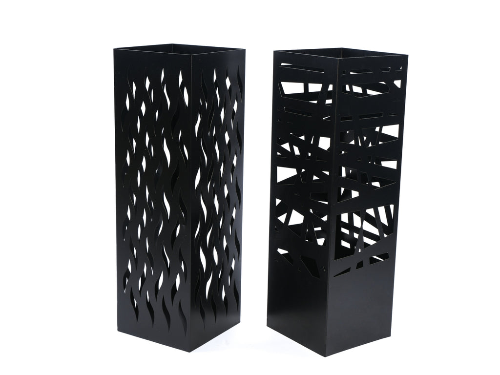 Portaombrelli quadrato in metallo traforato nero 15,5x15,5xh.49cm, decori assortiti