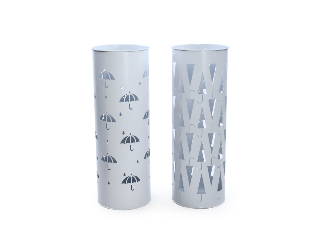 Portaombrelli tondo in metallo traforato bianco d.17,5xh.49cm, decori assortiti
