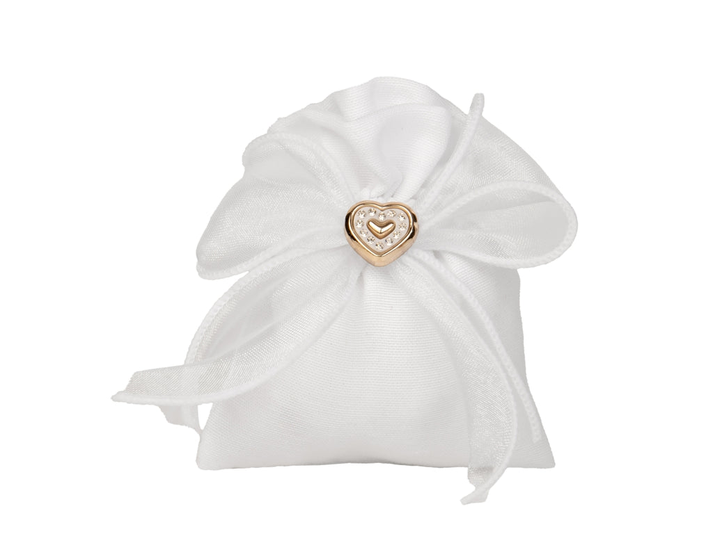 Prezioso sacchetto portaconfetti in tessuto con cuoricino 8x10cm bianco
