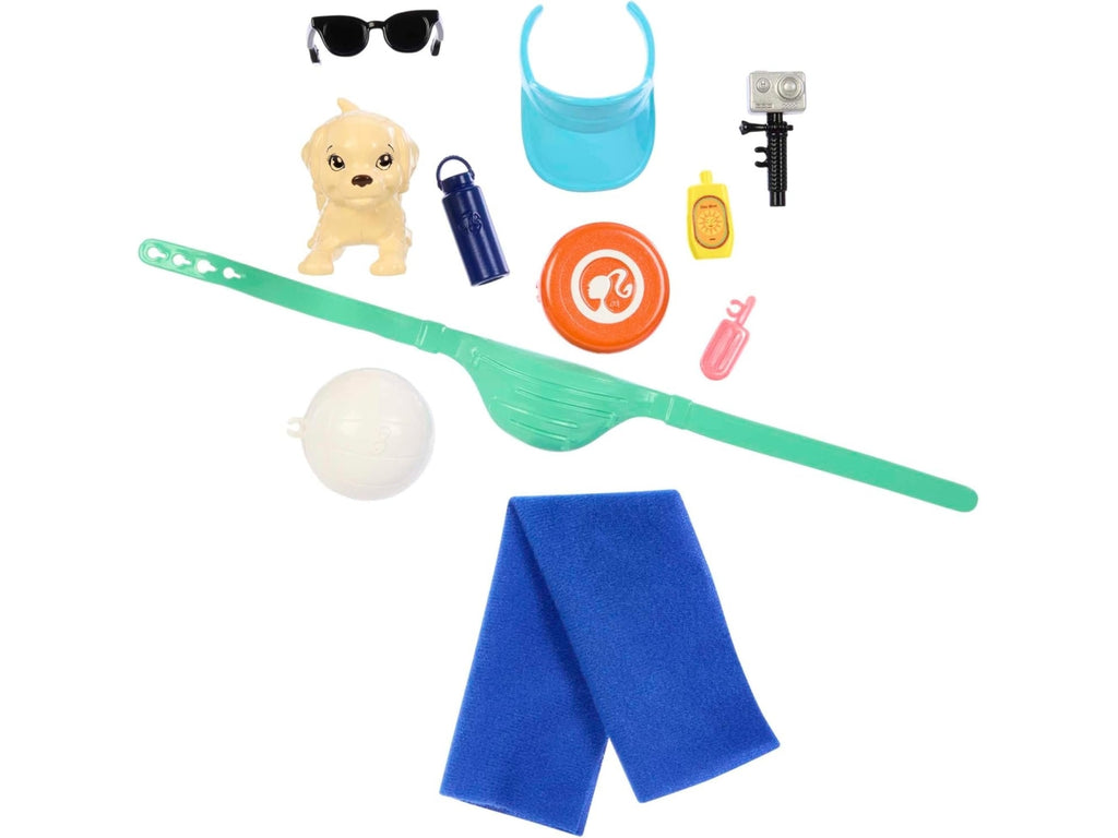 Vai col surf! Con questa bambola Ken i bambini e le bambine potranno trascorrere una bellissima giornata in spiaggia. La bambola ha una tavola da surf, un cagnolino e gli accessori per creare divertenti storie in spiaggia. La bambola surfa le onde sulla sua tavola sgargiante grazie alle clip per i piedi e un cinturino alla caviglia. Ken sfoggia un costume sportivo con infradito ed è accompagnato da un amichetto a quattro zampe.