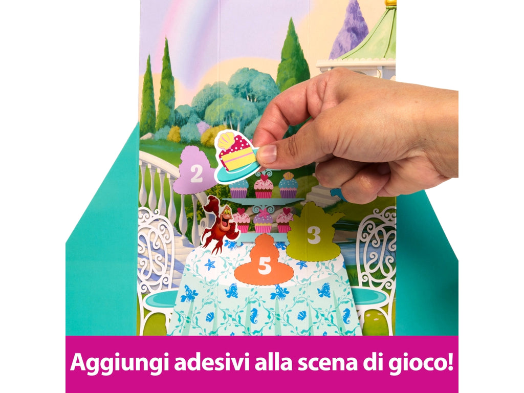 Le storie Disney senza tempo del set Disney Princess Spin & Reveal ti regaleranno un'esperienza magica! Per prima cosa apri il fiore per rivelare una scena di gioco con sagome misteriose. Quindi gira la confezione per trovare 5 bustine misteriose contenenti 5 accessori e 5 adesivi. La sorpresa finale sarà una principessa alla moda (Ariel, Rapunzel o Jasmine) con un bellissimo abito floreale! La gonna reversibile e il corpetto agganciabile arricchiscono il divertimento. Inoltre, i bambini possono decorare la scena di gioco e usarla come ambientazione per inventare delle storie. Le bambole non possono reggersi in piedi da sole.