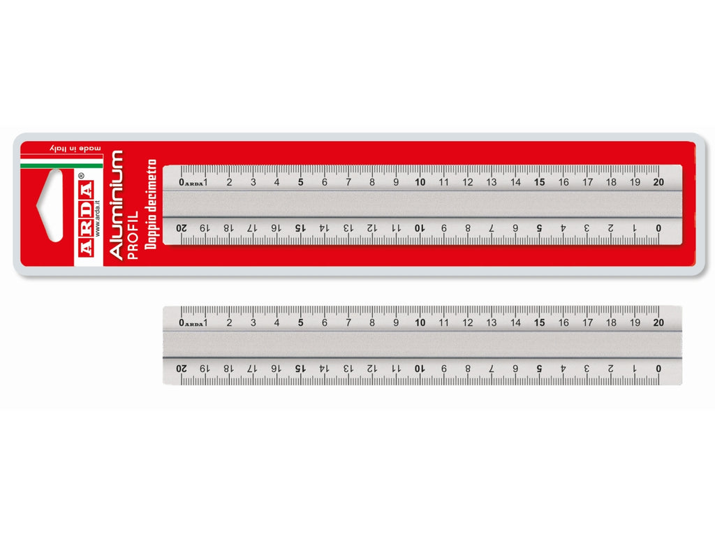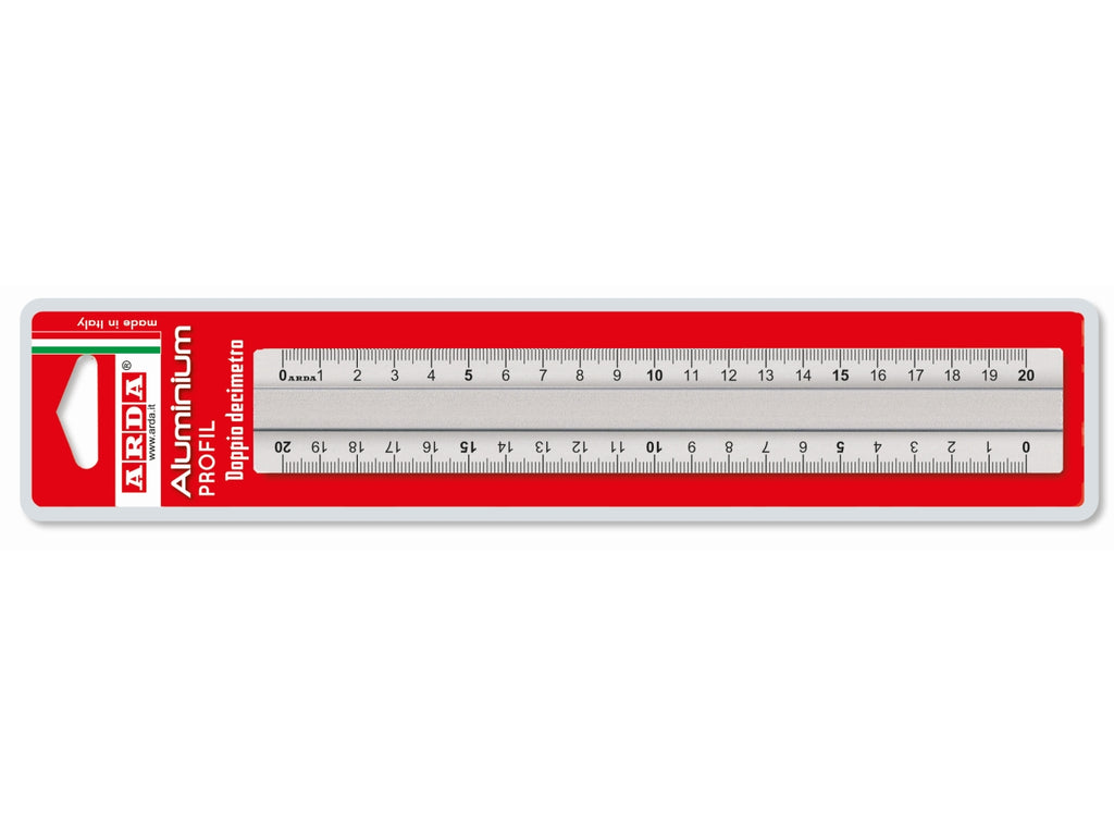Il doppio decimetro PROFIL in alluminio da 20 cm è uno strumento compatto e professionale, perfetto per un uso scolastico, tecnico o quotidiano. Realizzato in alluminio di alta qualità, è dotato di doppia scala graduata, con una lettura continua da sinistra a destra e inversa per una maggiore versatilità di utilizzo. La stampa della scala in tampografia nera garantisce una lettura nitida e durevole nel tempo. Il corpo rigido e resistente assicura una precisione costante anche con un uso frequente. Design sottile e raffinato, interamente Made in Italy, unisce funzionalità ed eleganza.