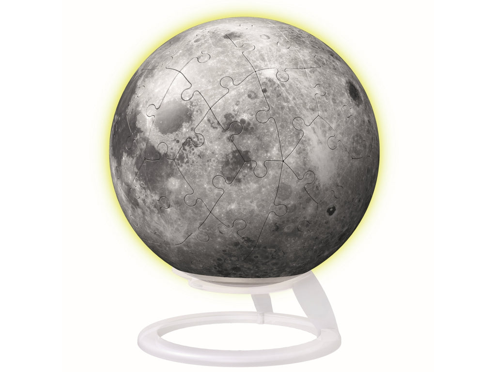 à possibile avere la luna nella propria stanza? Si! Grazie al nuovissimo puzzle 3D della Luna. I 72 pezzi di puzzle formano il piccolo satellite della Terra, una volta assemblati, si illuminano al buio! Un oggetto decorativo che si illumina al buio e che ispira tutti i fan dello spazio e gli appassionati della luna Grazie ai pezzi di plastica fosforescenti, la luna del puzzle 3D si illumina anche al buio. Contenuto: 72 pezzi di puzzle, base di appoggio, cavo di nylon, istruzioni. Grazie alla tecnologia Easy Click di Ravensburger, i pezzi che compongono il tuo 3D Puzzle si assemblano facilmente utilizzando la numerazione presente sul retro di ogni tessera di puzzle, oppure a occhio per una sfida più avvincente. Godetevi un momento di relax o una sfida con gli amici. Potete usare la vostra creazione come oggetto decorativo oppure smontarla e ricostruirla ogni volta che volete! Avvertenza. Non adatto a bambini di età inferiore a 36 mesi. Piccole parti. Rischio di soffocamento.