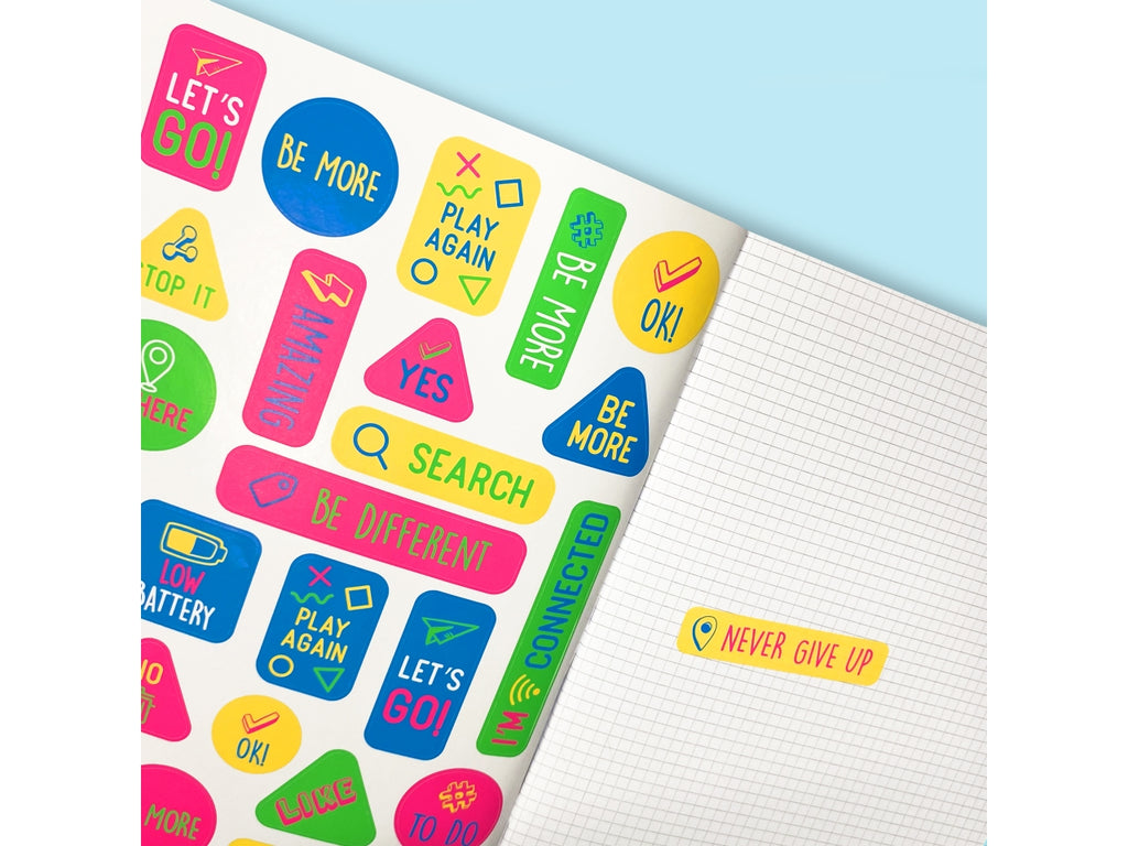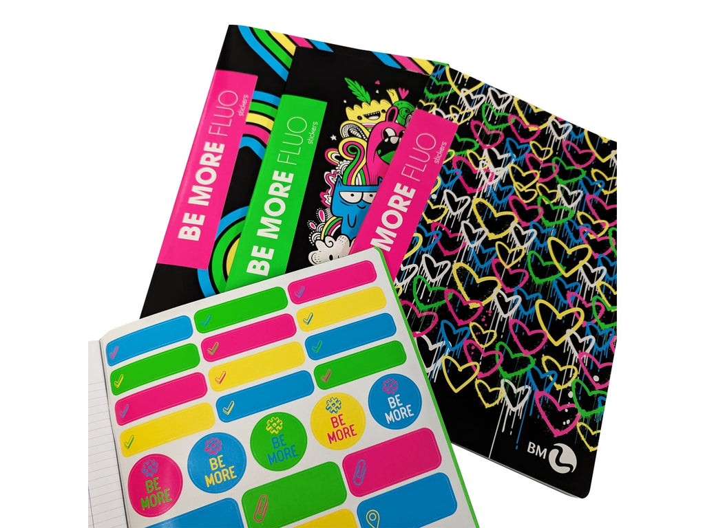 Maxi quaderni A4 realizzati con carta pregiata da 100 grammi, ideale per frequenti cancellature e per ogni tipologia di inchiostro. Copertina pesante da 250 g/m2 arricchita con lavorazioni speciali - plastica lucida e colori FLUO, per farti vivere delle esperienze sensoriali uniche! Interno copertina colorato e risguardo da colorare! Confezione da 10 pezzi, fantasie assortite! Made in Italy.