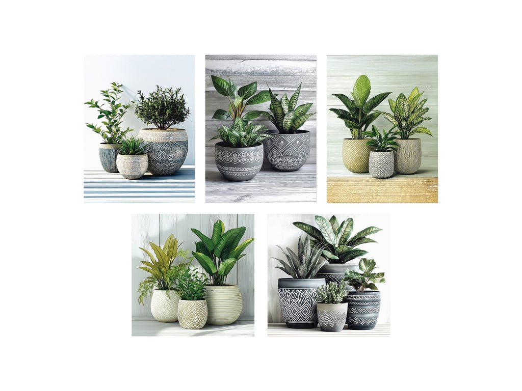 Quadri con piante set da 5 tele 15x20/25x25cm, 2 assortimenti