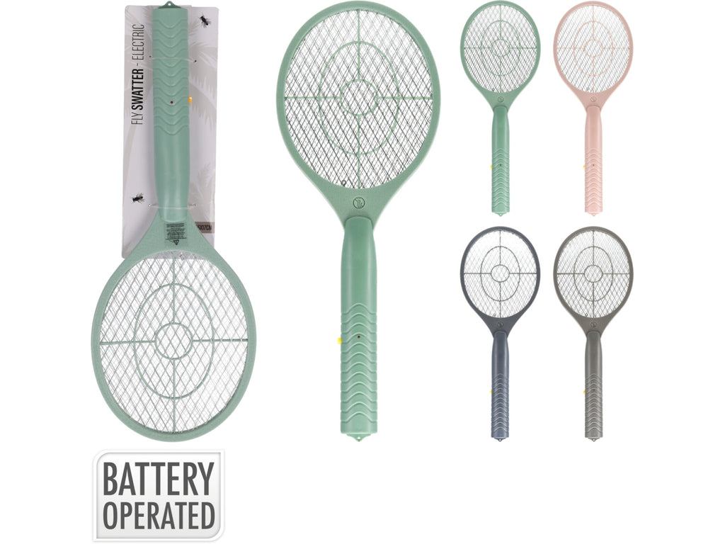 Racchetta elettrica per mosche di dimensioni 46x17cm b/o, 2 batterie AA non incluse disponibile in 4 colori assortiti.